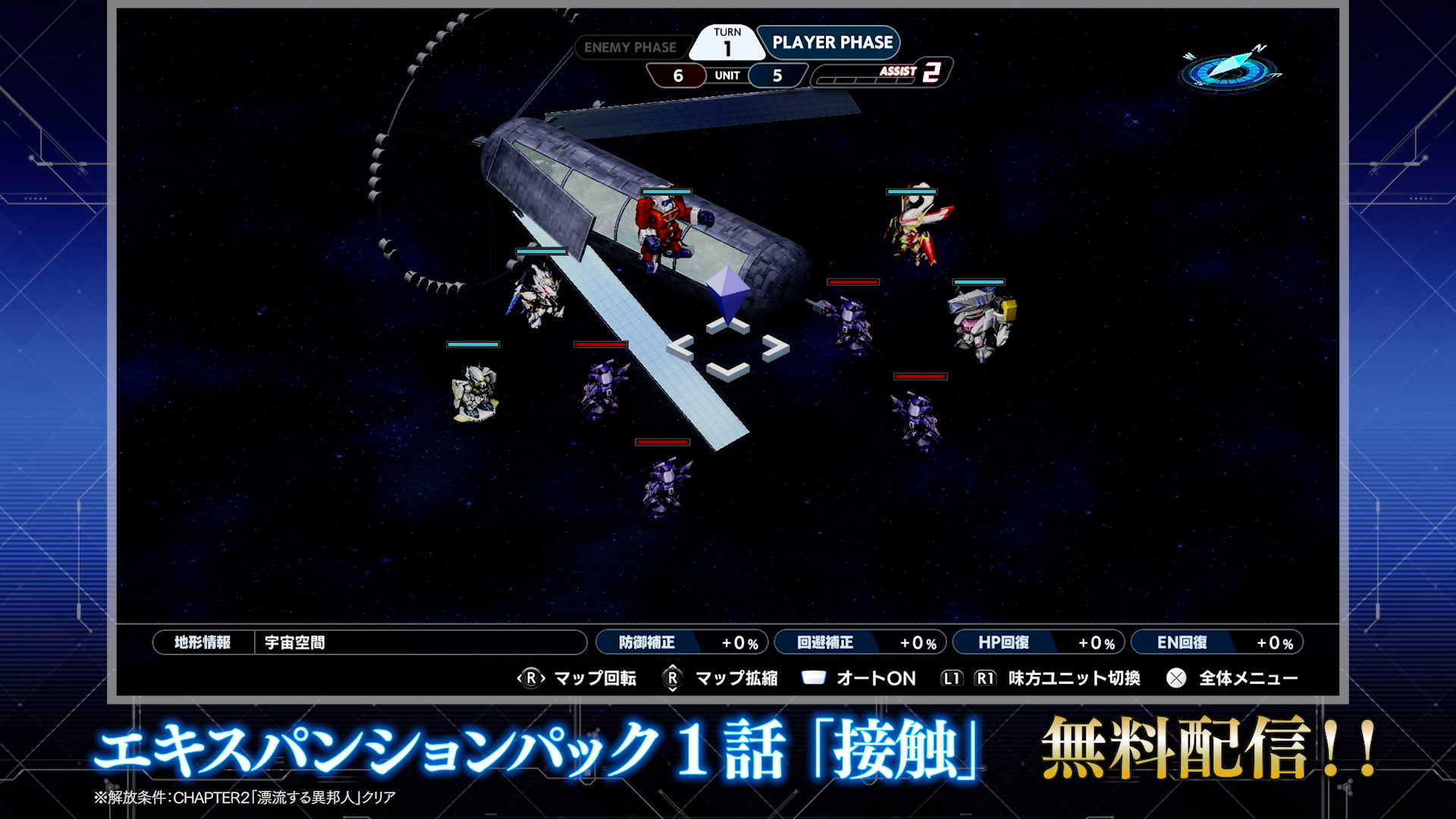 - エキスパンションパック1話「接触」クリア時点では、新規機体とパイロットは自軍に加入しません。